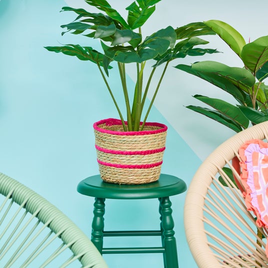 リアルな作りにこだわったアートグリーンです。まるで本物のようなディテールながらも、水やりや室内の温度管理の手間を気にせず、真夏でも気軽にグリーンを楽しめます。小さすぎず大きすぎないサイズ感でお部屋にも取り入れやすく、インテリアをワンランクアップしてくれるアイテムです。別売りのバスケットとの組み合わせがおすすめです。