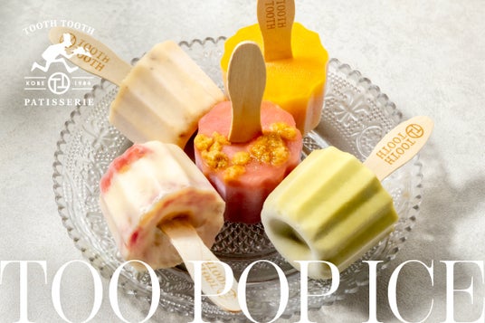 四季の移ろいをあしらった果実たっぷりのタルトや、しっかり焼きこんだ素朴なお菓子たちをお届けしている神戸の洋菓子屋「PATISSERIE TOOTH TOOTH」。そんな「PATISSERIE TOOTH TOOTH」のパティシエが出会った果実や素材、こだわりと遊び心から生まれた『TOO POP ICE』が今年も登場!2025年5月8日(木)よりオンラインショップにて販売を開始いたします。