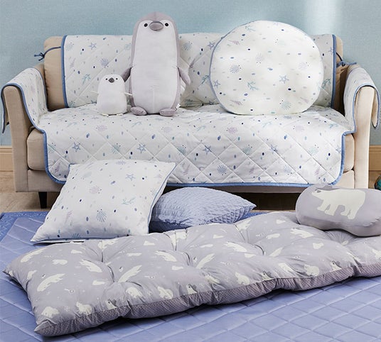 テディ柄・ペンギン柄・花柄のベビーアイテムや可愛いアニマルデザインのぬいぐるみは、淡い色合いでインテリアにもなじみやすいアイテム。家族の一員であるペットのひんやりペットベッドもお部屋のテイストにあわせて選べる幅広いラインアップでご用意しております。