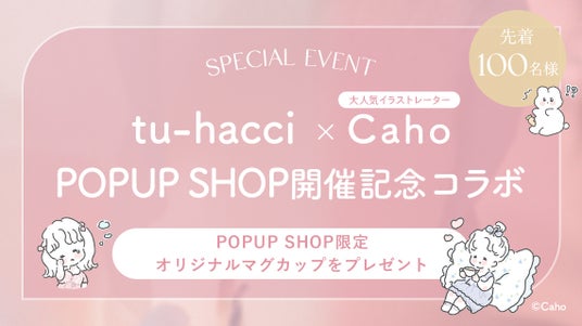 Instagram・Xフォロワー数35万人以上!大人気イラストレーターCahoさんとの特別コラボアイテムがtu-hacci POPUP SHOP限定でゲットできます。