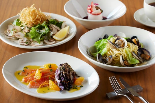 富士スピードウェイホテル「TROFEO イタリアン」では、前菜4種・メイン6種からお好みでお選びいただける「プリフィックスランチ」提供中。日本初の陸上養殖によるアトランティックサーモンのマリネや、春キャベツとあさりのボンゴレ、しらすと青のりのピザなど、旬の素材を活かした多彩なメニューを、富士山の雄大な景色を望む上質な空間でご堪能いただけます。