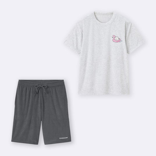 愛らしいちいかわたちの表情がデザインされたアロハシャツや、音楽にあわせてノリノリのシーンが描かれたTシャツなどのウェアをはじめ、ちいかわ・ハチワレ・うさぎ・シーサー・くりまんじゅうが1つずつデザインされたソックス、パイル生地で触り心地のよいポーチやミニポーチ付きのネットバックなど豊富なラインナップで展開します。ちいかわたちが各々に夏休みを楽しむシーンが描かれたサテンパジャマはウィメンズアイテムとキッズアイテムがリンクするデザインになっており、親子リンクコーデも楽しめます。