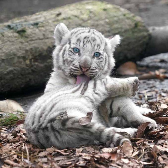 ホワイトタイガーはベンガルトラの突然変異種で、現在野生では存在が確認されていない希少なネコ科動物です。色柄が珍しいために乱獲されたり、体の色が目立ち上手く狩りができないことなどが原因で、野生下ではほとんど目撃されることがありません。そのためインドでは「神の化身」と考えられ、姿を見た人には幸運が訪れるという伝説があります。