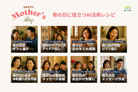 株式会社WEAVE(広島県東広島市、代表取締役 久保直樹)は、生成AIを日常に取り入れる1分動画シリーズ【ミーネクスト】にて、「母の日」向けの特設コンテンツを2025年5月に公開しました。