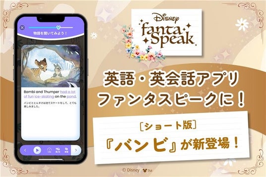 株式会社アルク(東京都品川区 代表取締役社長:天野 智之、以下アルク) 開発・提供、ウォルト・ディズニー・ジャパン株式会社監修の英語・英会話アプリ「ディズニー ファンタスピーク」において、英語初級者向けショートストーリーとして、ディズニーアニメーションの名作『バンビ』が新登場!2025年5月8日から配信を開始し、同日より『バンビ』をモチーフにしたグッズが当たる、アプリ内学習応援イベントもスタートしました。