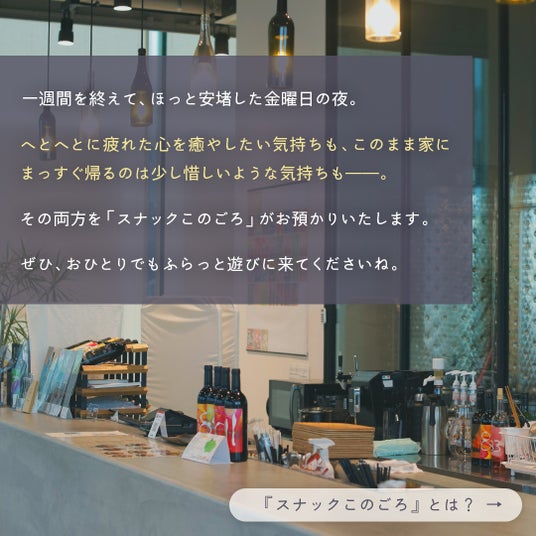 ◆『スナックこのごろ』を5月16日(金)18時~21時第8回目の営業の詳細>> https://feli.jp/s/pr2505122/5/