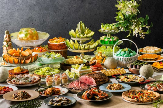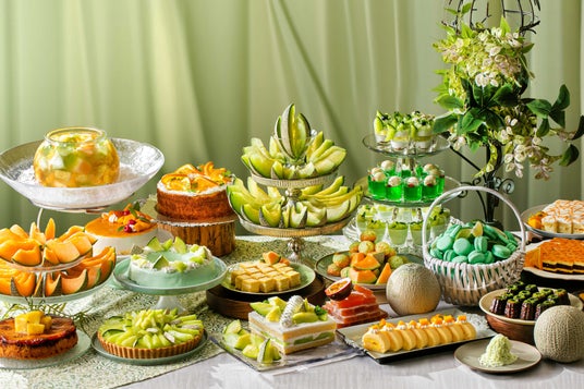 甘くてジューシー、香り豊かなメロンが主役。その魅力を余すことなく堪能できる珠玉のデザートブッフェ「甘美なる緑の宝玉、メロンの饗宴」。