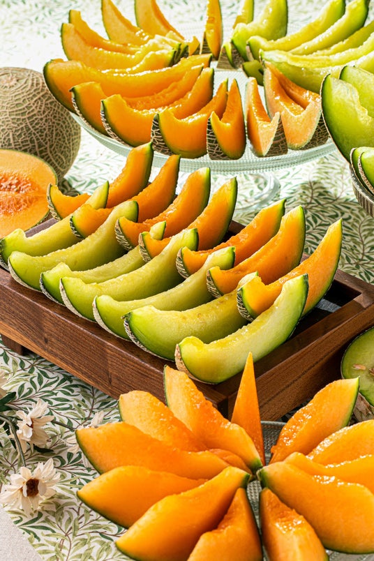 口にした瞬間、上質な甘みが広がる赤肉メロンと、みずみずしい清涼感が際立つ青肉メロン。異なる魅力を持つ2種の高級メロンを食べ比べながら、優雅なひとときをお楽しみいただけます。
