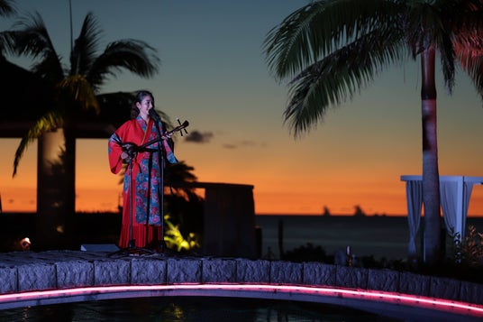 夕日が海に溶け込む魔法の時間、島風と三線の音色が重なり特別な時間を演出します。