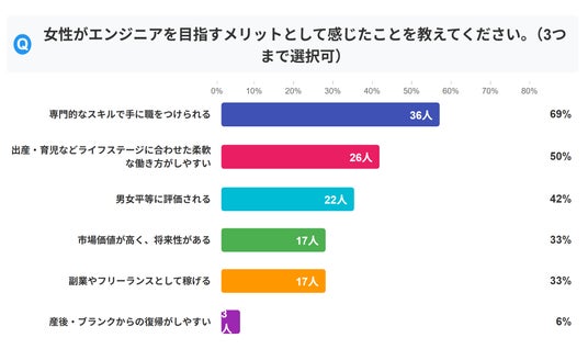 女性がエンジニアを目指すメリットとして感じたことを教えてください。 (3つまで選択可)
