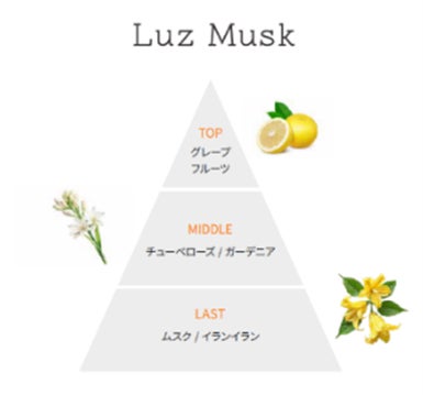 グレープフルーツなどのフレッシュな香りとチューベローズやホワイトムスク、イランイランなどのエレガントかつ甘美な香りを独自で調香した【Luz Musk(ラズ ムスク)】。香水を纏うようにデリケートゾーンをケアします。