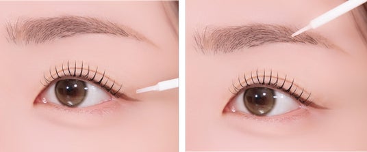 2. 一度乾かす(5~10秒程度)。乾かしている間に、反対のまつ毛にも塗布するのがオススメ!
