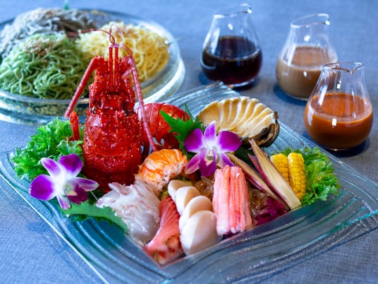 中国レストラン 聚景園では、海の幸たっぷりの海鮮冷麺や和牛スタミナ冷麺、さっぱりとした棒棒鶏冷麺に加えて、ロブスターや鮑、キャビアなど選び抜かれた食材で仕立てた「特選プレミアム冷麺コース」など、涼味あふれる冷麺をご用意。冷麺をご注文のお客さまは、小籠包、餃子、焼売とサラダがついた点心セットもお得に愉しんでいただけます。