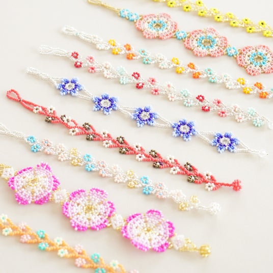 様々な色のコードを組み合わせて、縦横で編んで織るデザインは無限。
