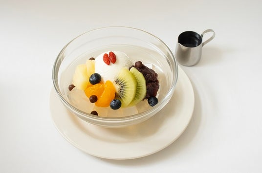 まわりのフルーツやアイスたちが味わいをさらに華やかに。こころおどるオリジナルのクリームあんみつです。