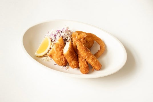 フライ盛り合わせ 990円エビフライ・白身魚フライ・オニオンフライのビールがすすむラインナップ。きょうの疲れも吹き飛ばそう、さぁ乾杯!