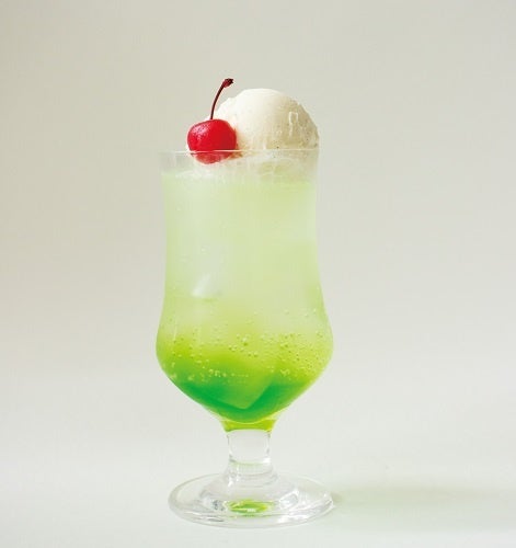 クリームソーダ 770円 初夏のあこがれ、みどりのシロップにぷかぷか浮かぶアイスクリームとチェリーがなつかしさを呼び覚ます、ゆめのクリームソーダです。