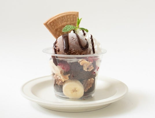 チョコバナナサンデー 880円ョコレートケーキにアイス、バナナとクルミ、さいごにホイップクリームをたっぷりと。