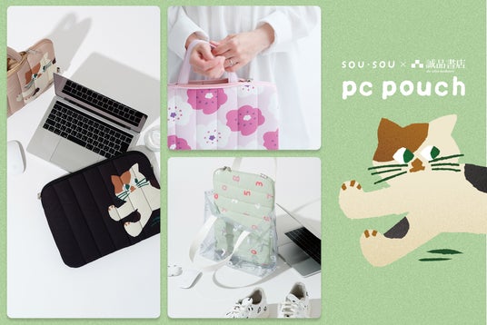 京都のテキスタイルブランド「SOU・SOU」(代表取締役:若林剛之)が、台湾を代表する複合型書店「誠品生活股份有限公司」(会長:吳旻潔/マーシー・ウー)とコラボレーション。この春の「誠品書店」ポップアップショップで話題となったオリジナルアイテム「PC ポーチ」を2025 年5 月15 日(木)より、日本でも販売します。このたび発売となるのは、SOU・SOU× 誠品書店コラボ限定色の「SO-SU-U」「ほほえみ」「三毛猫」3柄。軽くてクッション性のある素材を使用しており、14 インチのノートPC に適したサイズ。タブレットやガジェット類の収納、A4 サイズの紙資料にも。コラボならではの配色は、長年のSOU・SOU ファンにとっても見逃せないバリエーションです。