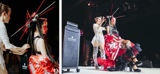 日本のトップサロンSHIMAがステージに登場。SHIMA AOYAMA、SHIMA AOYAMA PEAKのディレクター原田慎也氏が洗練されたカットテクニックと斬新なスタイリングを特徴とする日本の最新スタイルを、SHIMA HARAJUKU LEAPのディレクターSAYAKA氏は、日本の伝統的な花魁「和」にインスパイアされた、華やかさ、エレガントさ、クールさを兼ね備えた魅力的な「東京スタイル」を披露し、独創的かつ現代的なデザインをつくり上げ喝采を浴びました。