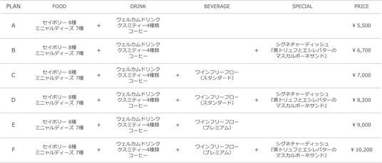 ●プラン詳細(おひとり様)※ 価格(PRICE)には消費税・サービス料が含まれております。