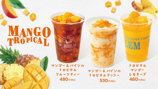 濃厚な甘みととろける食感が魅力の“マンゴー”と、ジューシーで爽やかな“パイン”を使用した、南国気分あふれる3種のドリンクが登場します。