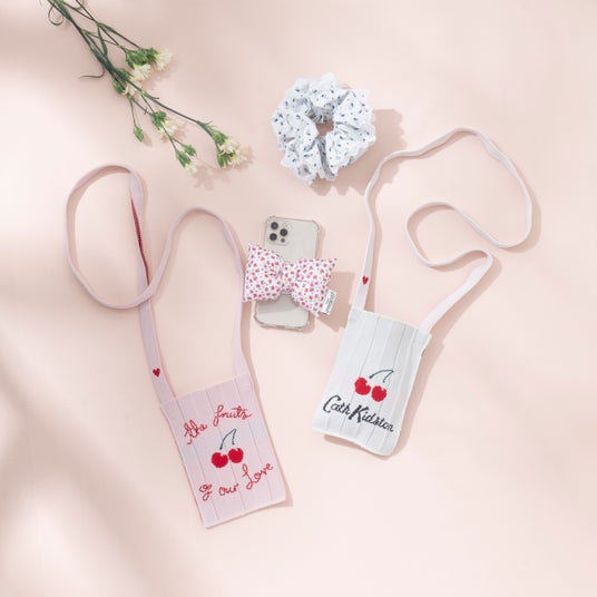 リボンとチェリーは、Cath KidstonのTシャツなどにも登場しているデザインです。ぜひ洋服とのコーディネートもお楽しみください。