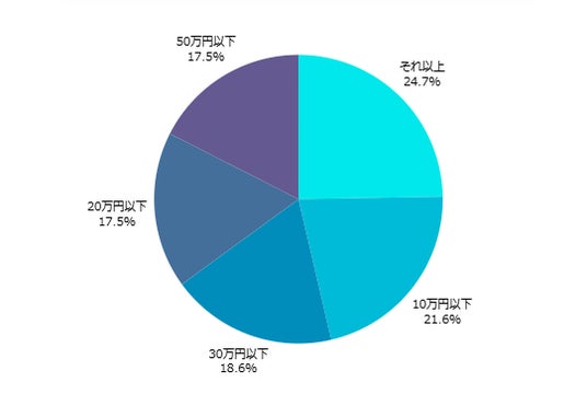 学生のクレジットカードの限度額は50万円以上が最も多く、10万円以下が21.6%でこれに続いた。
