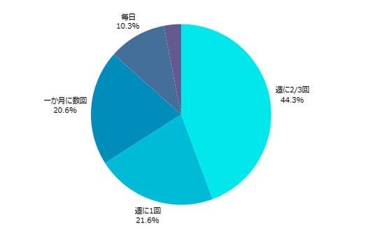 学生のクレジットカードの利用頻度としては週に2・3回が44.3%で最も多かった。また、週に1回のみ利用している人も21.6%いた。
