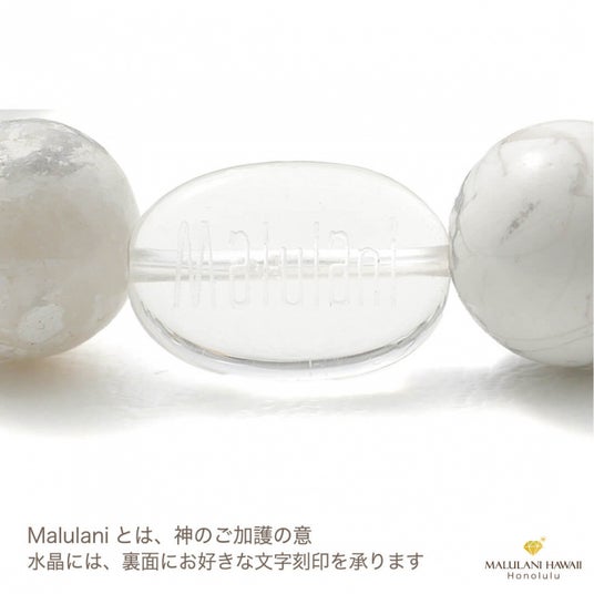 水晶には、ハワイ語で「神に護られた」という意味を持つ「malulani」と刻印。 持つ人に「神のご加護がありますように」との祈りをのせています。