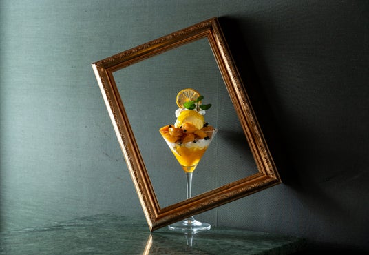 1日の締めにふさわしいトロピカルな夏のご褒美パフェ「シメパフェ~ご褒美マンゴー~」。トップのドライレモンは太陽、ホイップクリームは白い雲をイメージし、マンゴーで夏らしい力強い日差しを表現しました。とろけるマンゴーソースが絡むホイップクリームとバニラアイスクリームは、シンプルでスタンダードな味わいながらも、クッキーやマシュマロなどで異なる食感を愉しめます。