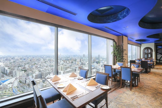ホテル最上階の43階、地上150mの風景を一望しながらイタリア料理をお楽しみいただけます。迫力のある眺望、色鮮やかな料理が掛けあわさることで実現する非日常の空間を演出いたします。エントランスには、お好みのカクテルとともにお待ち合わせや食後のひとときをお過ごしいただける、スタンディングバーをご用意しております。景色を楽しみながら、誕生日・記念日をお祝いいただけるメッセージプレート付きプランもおすすめです。