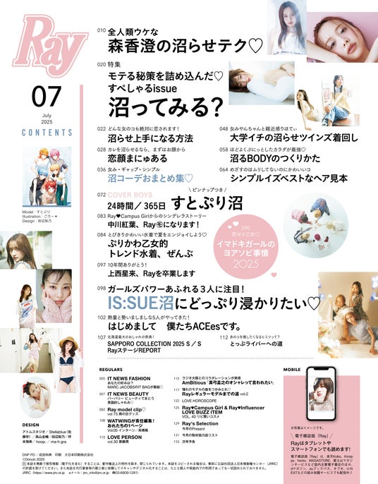 2025年5月22日(木)に発売する『Ray』2025年7月号の通常版表紙は森香澄、特別版表紙はすとぷりがそれぞれ務めます。今号は「沼ってみる?」を大特集のテーマに、恋愛・コーデ・メイクなど様々な切り口から沼らせる女の子像を徹底解析します。【商品情報】