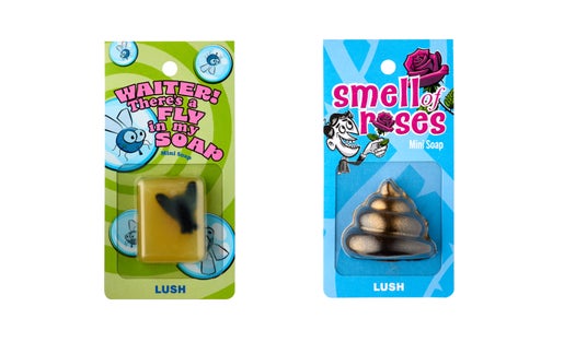 ラッシュが今回のトリックスコレクションで目指しているのは、バスルームに古き良き遊び心を取り戻すこと。「トリック」は、名前の通りすべてのアイテムに捻りを利かせています。スライム状に変化する入浴料、刺激的な香りのトウガラシエキス入りリップスティック、バラの香りのする「うんち」ソープ、目玉をモチーフにしたバブルバーなど、ユニークなアイテムを取り揃えました。