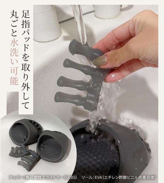 - 素材:アッパー:熱可塑性エラストマー(SEBS)、ソール:EVA