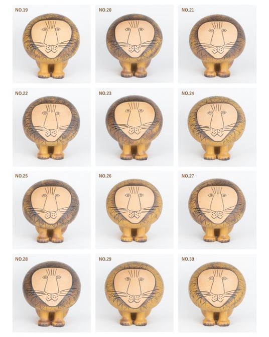 「ライオンマキシ」は、リサ・ラーソンの代表的なシリーズ「アフリカシリーズ」の中でも最大サイズを誇る人気作品です。ひとつひとつ異なる焼き色や表情、たたずまいが魅力の本作品は、これまでオンラインでは“おまかせ”でのお届けが主流でしたが、今回は12体それぞれの個性を写真でご紹介し、お客様にお好きな一体をお選びいただける仕組みとなっております。