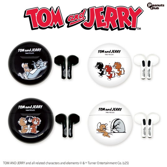 トムとジェリーのデザイン入りのワイヤレスイヤフォン。