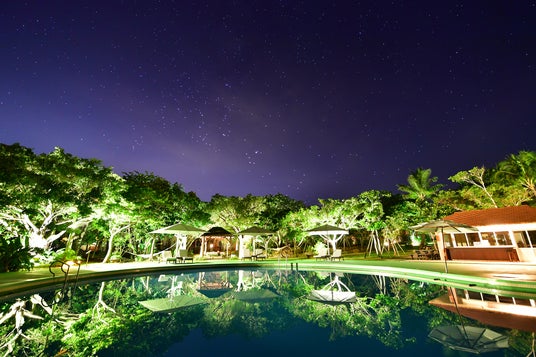 沖縄本島の中部、高台から海を見晴らす静かなロケーション。東京ドーム1個分、約7,000坪の敷地に亜熱帯の樹々や南国の花々が咲き、まるで別荘で暮らすように過ごせるガーデンリゾートで、日常から解放され、時間を気にせず、ココロとカラダにパワーをチャージしませんか。