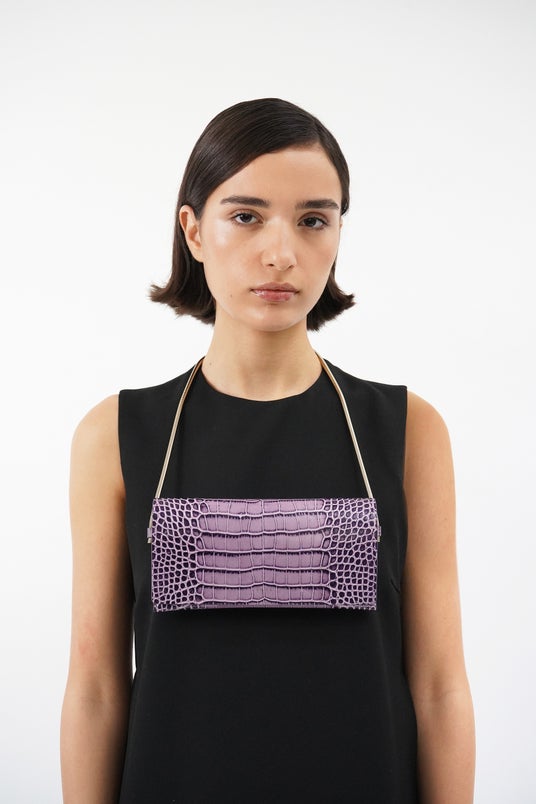 ユニセックスユーズを意識し、クラッチバッグとしても使えるアヌークはクロコ型押しのライラックが洗練された強さと個性を添えて。