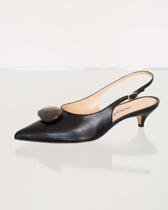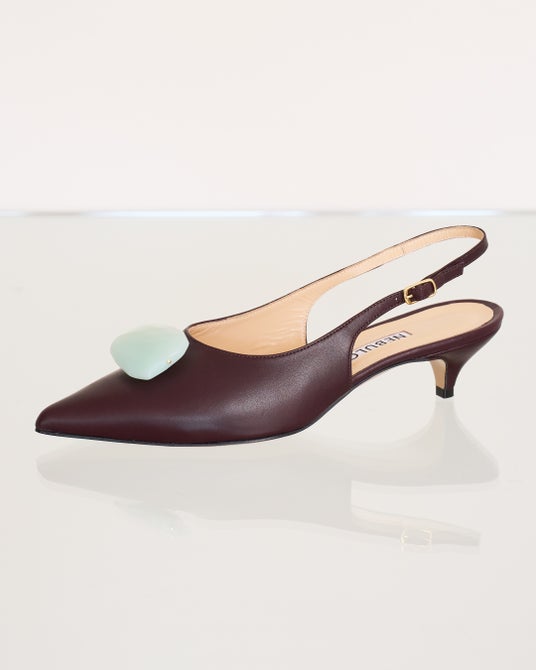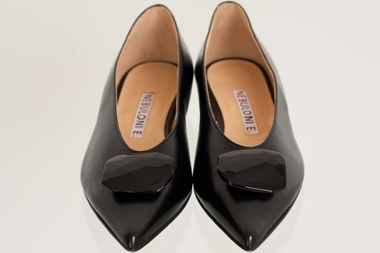今シーズンより、ネブローニの定番シューズに新たな魅力を添えるのは、硬質な素材に柔らかさを残す繊細な カットを施し、足元に優しい陰影を生む3種類のストーン。ニュアンスのある質感とカラーで、シンプルなシュ ーズにモードなエッジを加えます。今季新色のダークカラーなボルドー色の定番シューズにも、アクセントを プラスして。