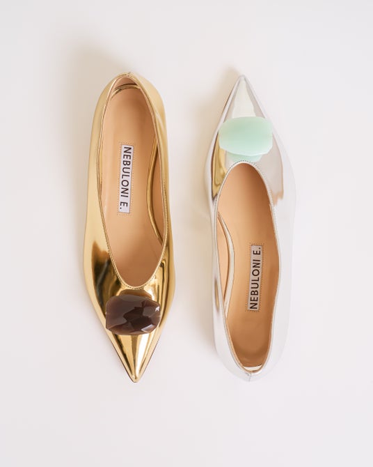 大胆でいてシック。ミニマルに静かな存在感でやわらかな光を放ち、視線を奪う1足に── まるでアートピースをまとって歩くような、新しいネブローニスタイルの提案です。