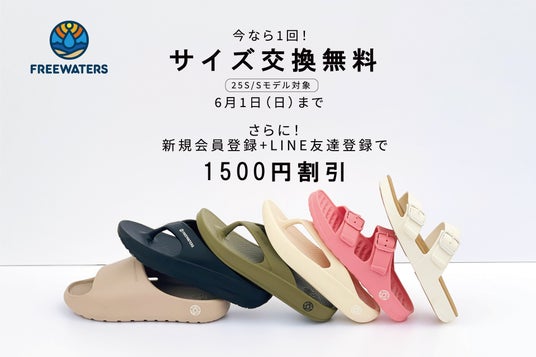 カリフォルニア発のサステナブルフットウェアブランド『FREEWATERS』から、今だけの特別企画!サイズ交換1回無料キャンペーンを実施中