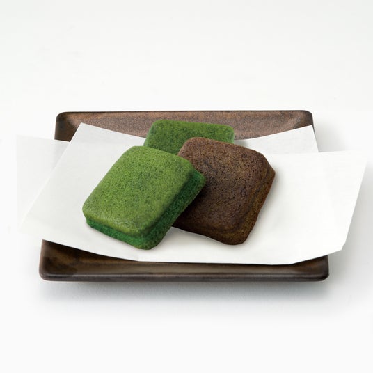 がとーぶぶフィナンシェ(抹茶・ほうじ茶)米粉を使って焼き上げたもっちりとした食感の「和フィナンシェ」。薄いお餅のような求肥(ぎゅうひ)を使用しており、和洋折衷の味わいを抹茶とほうじ茶の2種類でご用意しております。
