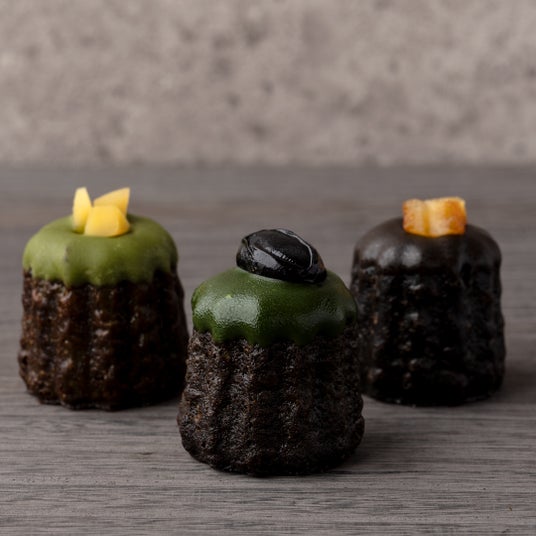 カヌレ(抹茶・玄米茶・ほうじ茶)祇園辻利 大丸心斎橋店限定メニューのカヌレが登場。外はカリッと、中はもっちりとした生地が特長。抹茶の旨味と深いコクが感じられる抹茶カヌレには黒豆を、香ばしさと優しい甘さの玄米茶カヌレには栗ダイスを、芳醇な香りと爽やかな後味のほうじ茶カヌレにはオレンジピールをトッピングしました。