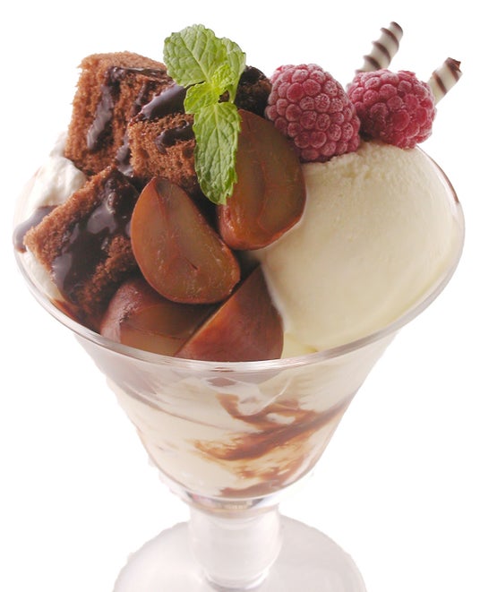 口あたりなめらかな渋皮栗をトッピングした、バニラアイス、チョコソースとの相性も抜群のパフェです。