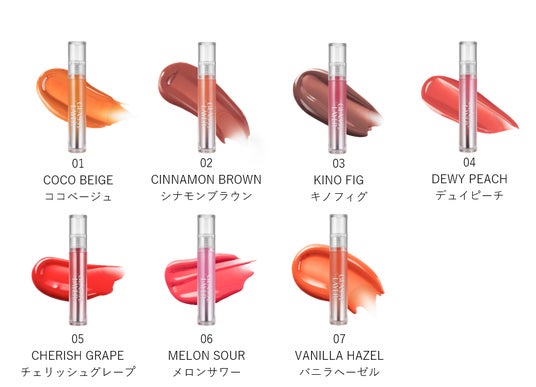 透明感あふれるクリアカラーから、鮮やかに映える発色カラーまで、多彩なシーンや気分、メイクスタイルに合わせてお選びいただける充実のカラーバリエーション展開中。新しい質感と彩りを、ぜひ体験してください。