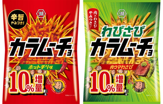 株式会社湖池屋(社長:佐藤章)は、辛味スナックのパイオニア「カラムーチョ」において、日頃のご愛顧に感謝を込めて「スティックカラムーチョ ホットチリ味」「スティックわびさびカラムーチョ 肉ウマわさび」の2品を期間限定で10%増量し、2025年5月26日(月)より全国・全チャネルにて発売します。