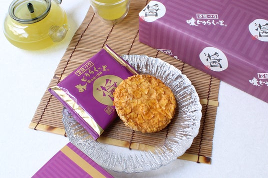 秋田県の東北醤油が製造する「万能つゆ 味どうらくの里」を使用した醤油揚げ煎餅。約40年前、佐竹社長がうどん・そば店向けに何度も改良を重ね開発した味どうらくの里。当時では珍しかった本醸造醤油をベースにかつおだしを加えた薫り高く濃厚なそのつゆは、煮物や郷土料理にも合うと評判を呼び一般家庭向けに「万能つゆ味どうらくの里」として一般販売をスタートし長きに渡り親しまれています。「万能つゆ 味どうらくの里」をベースに東北の自然の水を使用したこだわりの生地を、上質な油でカラッと揚げ、香ばしくサクサクの食感に仕上がりました。濃厚な香ばしさが、たまらなくクセになる一品です。