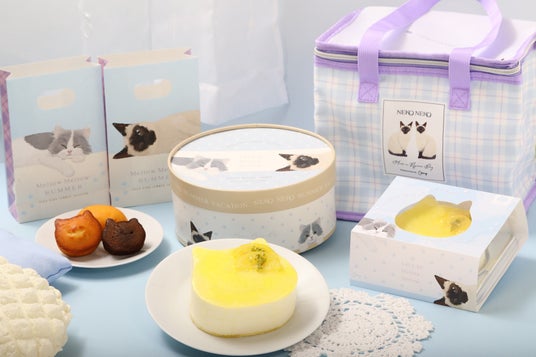 新デザイン箱でお届けする新商品『ねこねこレモン レアチーズケーキ』をはじめ、焼き菓子を詰め合わせた『ねこねこサマーバケーションBOX』や限定デザインの保冷バッグもご用意。