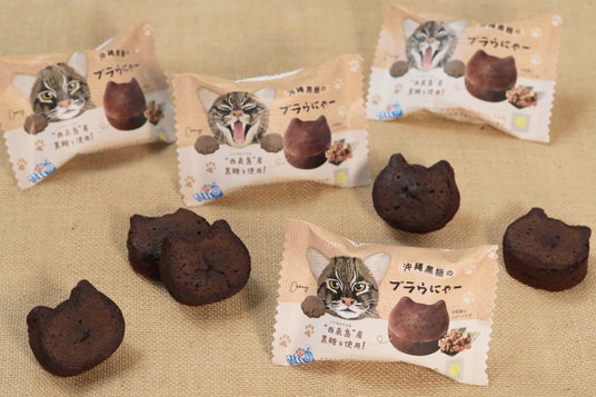 こだわり:沖縄・西表島産の黒糖を使用した、ねこの形がキュートなブラウ“にゃー”です。オリジナル